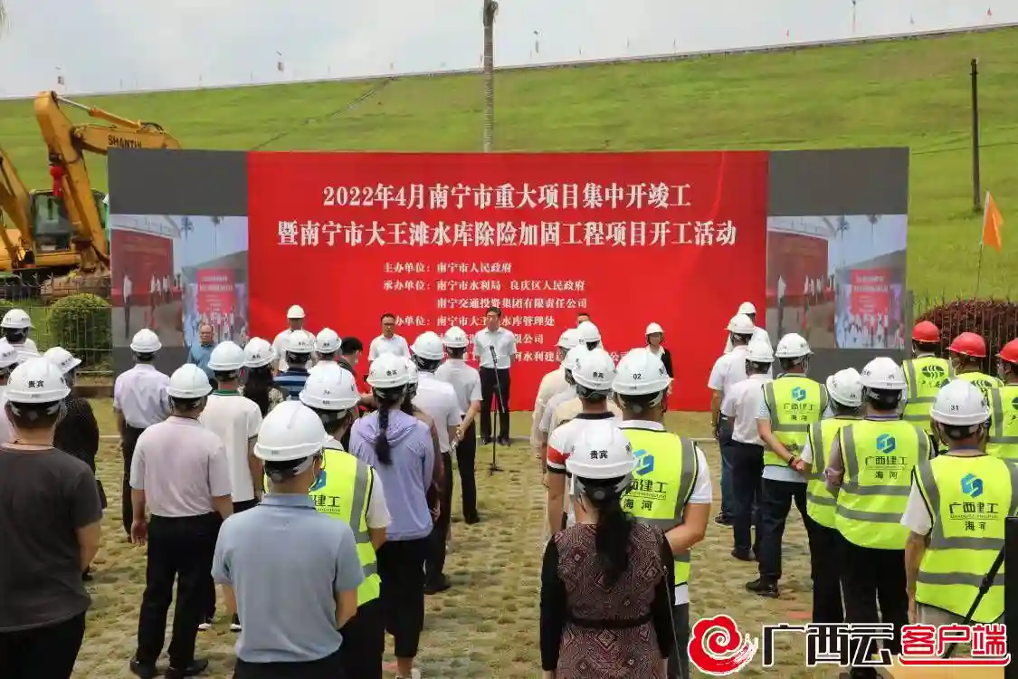 南宁市大王滩水库除险加固工程开工现场。